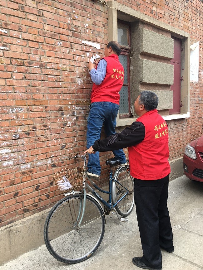 活動(dòng)中,按照事前的準(zhǔn)備和分工,黨員干部身著統(tǒng)一的志愿服裝,發(fā)揚(yáng)不怕臟,不怕累的優(yōu)良作風(fēng),團(tuán)結(jié)協(xié)作,拿著笤帚、畚斗、鏟子、噴壺等工具,集中清理墻面上的小廣告,雜草等,以實(shí)際行動(dòng)改善居民的環(huán)境面貌。